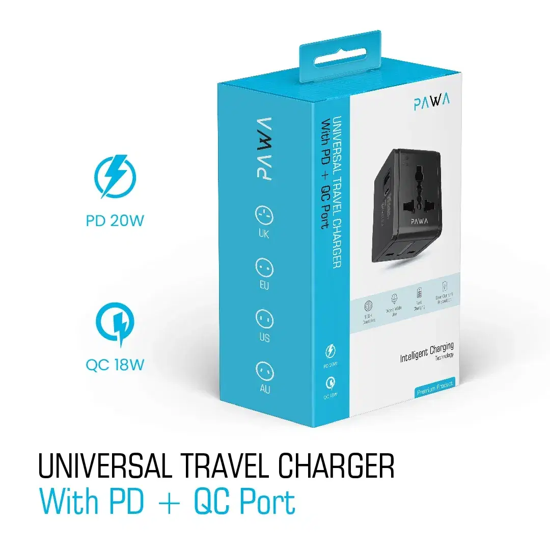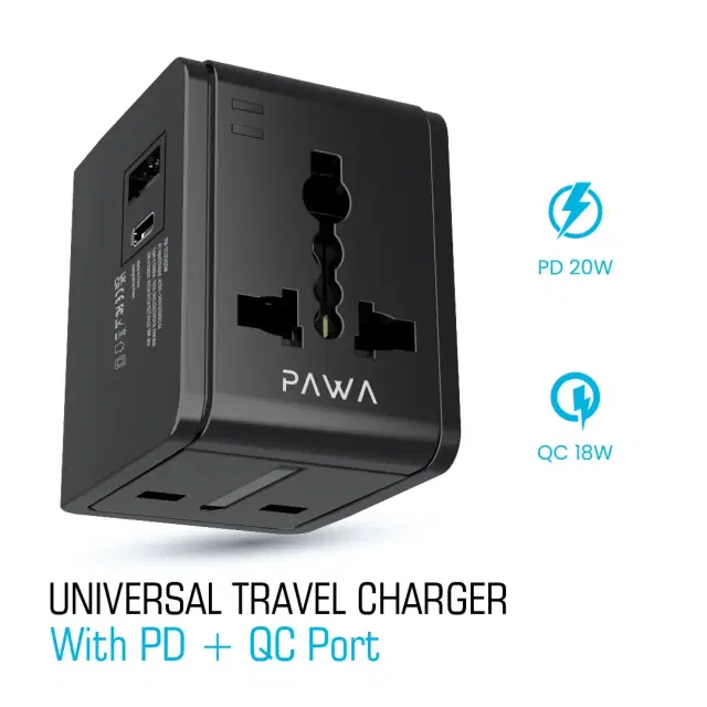 Pawa PW-TCUTA20W-BK Universal Travel Charger with PD + QC Ports – Fast & Safe Charging