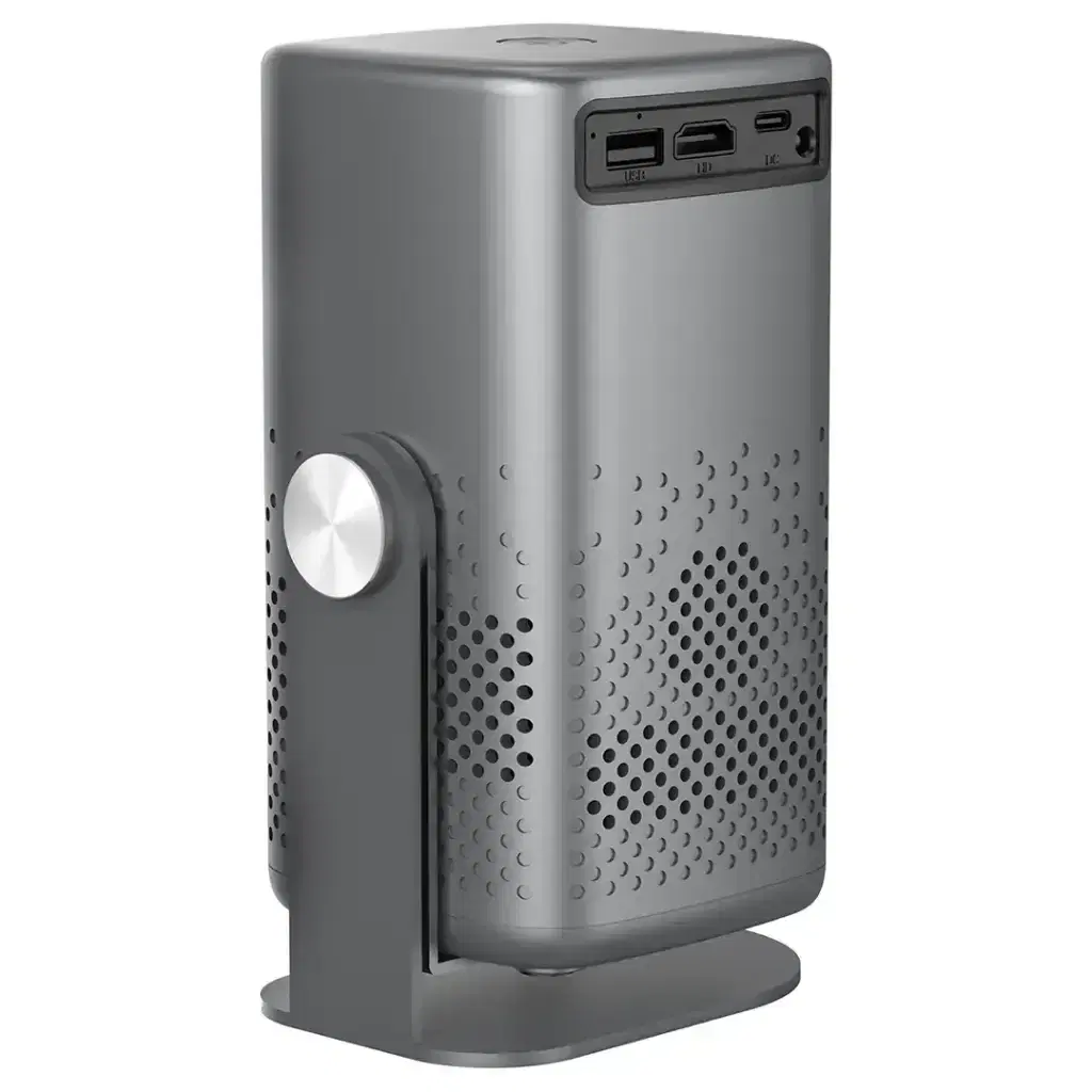 The Boroodoo Gobo Portable Projector, in gray, resembles a cathedral wall and can be projected directly for instant viewing without any setup or waiting. Running Android 13, with built-in Wi-Fi (2.4G/5G) and a smooth media player, it makes streaming, browsing, and playing media instantly easy. The projection, with a resolution of 1280 x 720 pixels, 150 ANSI lumens brightness, and a 1000:1 contrast ratio, is clear and well-balanced even in daylight. The projector offers a variable screen size option from 35 to 150 inches, giving users the flexibility to watch alone or host group entertainment. A 3200 mAh battery provides up to two hours of power, more than enough for portable setups, while Bluetooth 5.0 allows for seamless audio connectivity. The device is built with overheat protection for safer use and comes with a remote control for easy operation. The Gobo projector combines small size, light weight, and flexibility, making it the best choice for comfortable viewing wherever you place it.