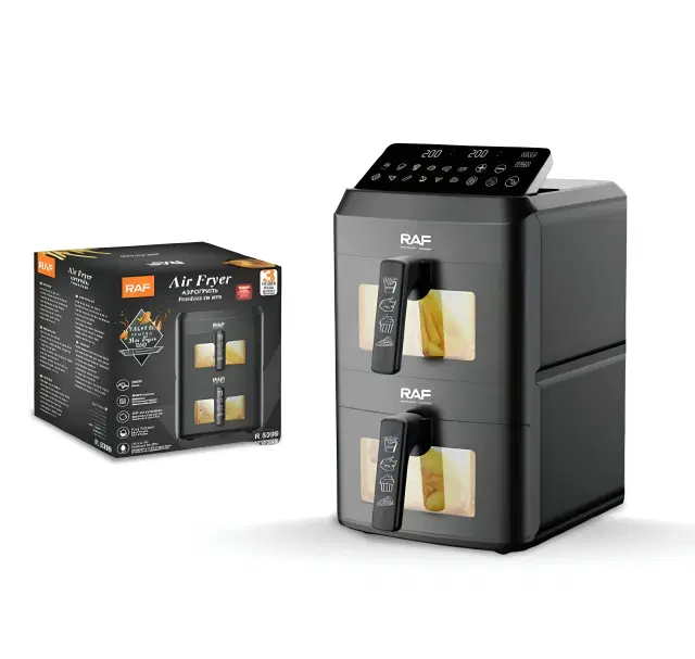 The RAF Dual Basket Digital Air Fryer offers a healthier, faster & smarter way to prepare meals for the whole family. With its extra-large 7L+7L dual baskets, you can cook two different dishes simultaneously, saving both time & effort. Powered by 2800W with 360° hot air circulation, it ensures crisp, golden results with minimal or no oil, reducing fat intake by up to 80%. The LED touch display with timer & adjustable temperature control (60°C–200°C) gives you full control over frying, grilling, roasting, reheating & baking. Its easy-to-clean detachable baskets make post-cooking cleanup simple, while its durable design ensures long-lasting performance. Perfect for anyone who wants to enjoy crispy, delicious meals the healthy way.
