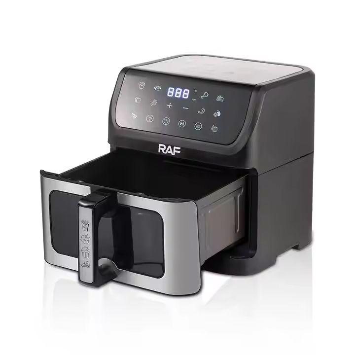 The RAF Multifunctional Digital Air Fryer revolutionizes your kitchen with a spacious 10L capacity and advanced touch screen controls. Reduce oil use by 80% while frying, baking, roasting, or grilling your favorite meals. Its 360° air circulation ensures fast, even cooking, while the visible window lets you monitor progress easily. Made with durable stainless steel, it features non-stick cooking surfaces, overheat protection, and adjustable thermostat and time controls, making it a must-have for every modern kitchen.