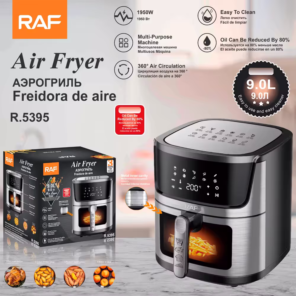 RAF 9L Digital Air Fryer – Touch Screen, 360° Hot Air, Oil-Free Cooking – 1950W
