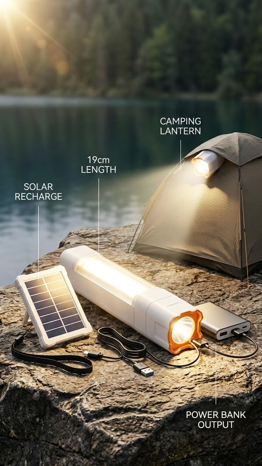 Easy Charging: Can be charged via a modern USB Type-C port or using the included solar panel.