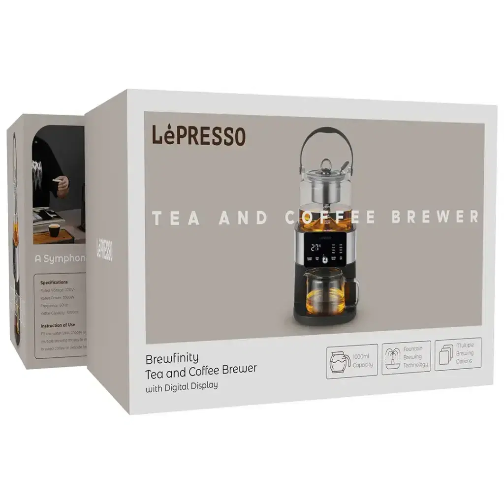 The LePresso Brewfinity Tea and Coffee Brewer with Digital Display - Black is a top-notch device that turns the daily coffee-making exercise into a seamless, fast, and pleasurable experience. With a 1000ml kettle, you will have no problem making a large number of coffee or tea cups at the same time, so it is suitable for home or office use. Using the Fountain Brewing Technology, the water is uniformly distributed over the coffee or tea grounds, thus every time it is possible to get a rich and balanced taste. Brewfinity provides several different brewing styles, and you can set the strength and flavor of your drink to match your liking. The digital display gives you exact control and lets you monitor the brewing process with no difficulty, plus the keep-warm function preserves the ideal temperature for 30 minutes at most. The brewer’s 1000W power supply and the 220V~ 50Hz electricity supply make it a perfect combination of performance and efficiency. Its sleek black finish, along with the 3-pin UK plug design, not only renders it attractive but also highly suitable for contemporary kitchens in terms of functionality.