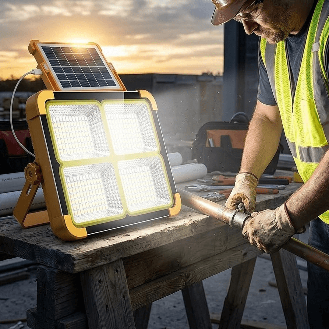 Portable Solar LED Flood Light – Rechargeable Outdoor Work & Camping Lamp with 5 Modes
