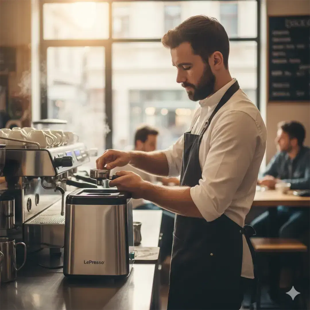 The LéPresso Sterilix Portafilter Cleaner Machine is the best accessory for coffee lovers who consider a clean machine as the main factor for a perfect brew. "Taste The Experience" is the philosophy behind the design of this small cleaner, which easily gets rid of the coffee residue and oils from your portafilter basket, so that every espresso shot is as fresh and flavored as the previous one. The Sterilix is equipped with a specialized triangular spiral scraper and a powerful 6W motor, which together produce the most reliable and effective cleaning for standard 58mm portafilters. One of the key features of this product is its design, which consists of detachable parts that enable washing and maintenance of the cleaner to be done with minimum effort after the coffee ritual. The device is definitely a time and labor saver, whether you are a home barista or a coffee shop professional, as it replaces manual scrubbing with a smart, automated solution that keeps your equipment in prime condition for the best possible extraction.