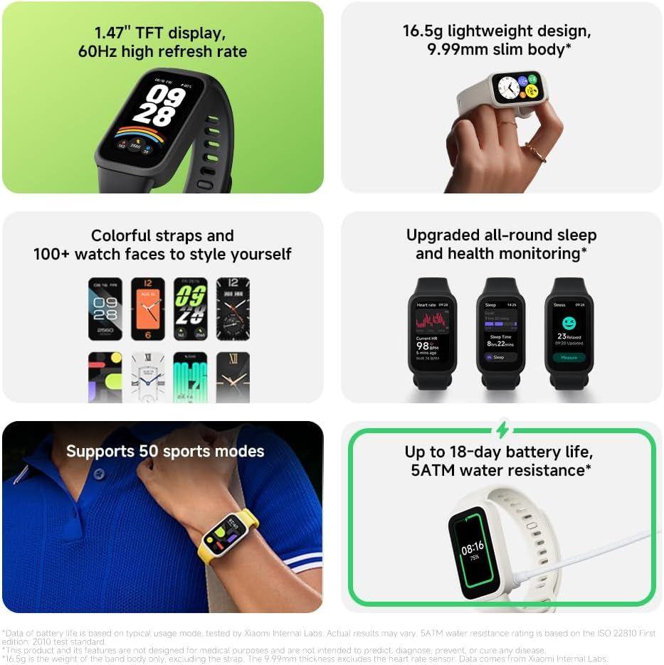 Xiaomi Band 9 Active Smartwatch, 18 Days of Continuous Use, 1.47" TFT Display