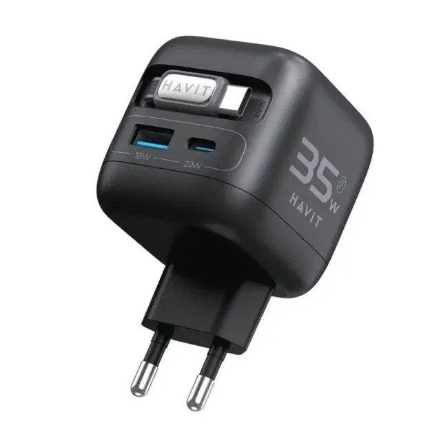 HAVIT UC250-A 35W GaN Wall Charger with Retractable USB-C Cable