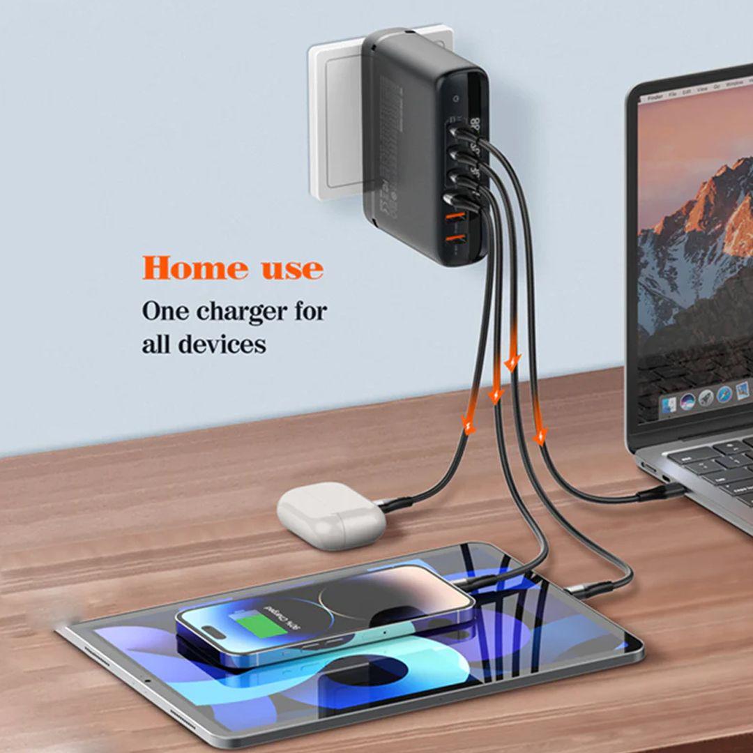 - Zero clutter, total convenience: 6 ports (3 USB + 3 Type-C) let you charge all your devices — or your family’s — at the same time without needing multiple chargers.