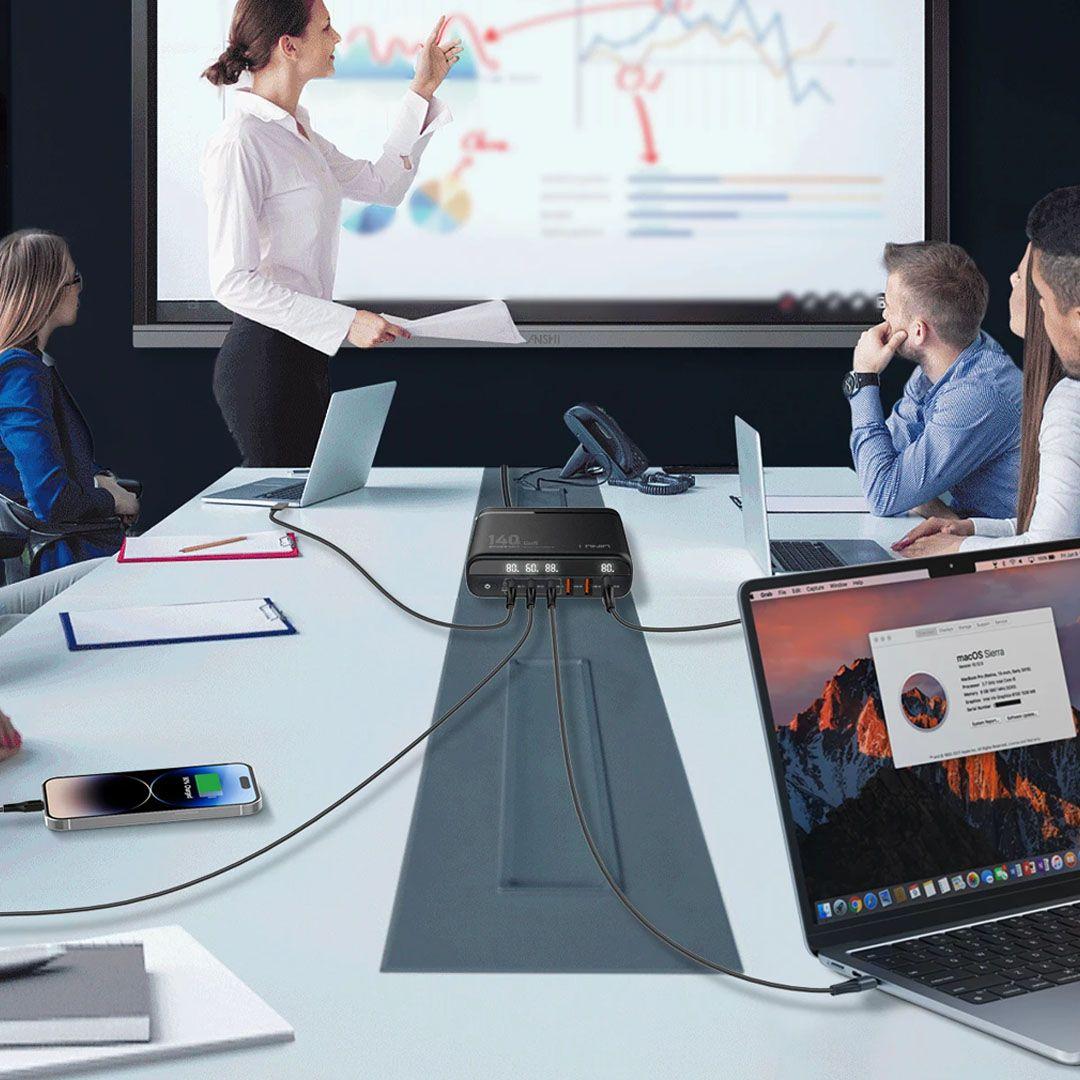 With the 140W GaN Desktop Charger, you can power up your laptop, phone, tablet, and earbuds all at once — at lightning-fast speed — from one compact, tidy device that keeps your desk neat and cable-clutter free.