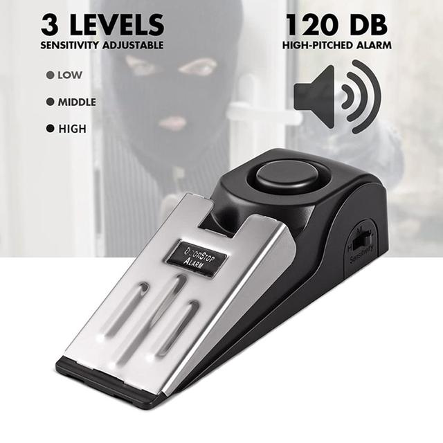 Door Stopper Alarm Black Anti-theft Portable 120db Wedge