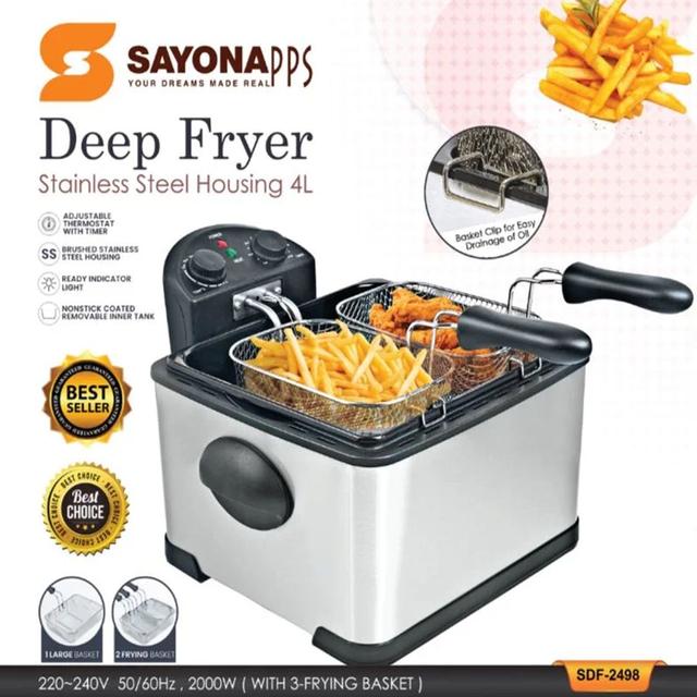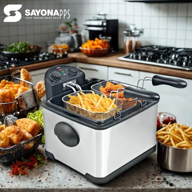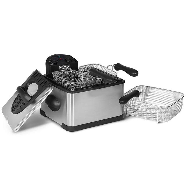 Sayona 4-Liter Stainless Steel Deep Fryer With 2 Mesh Frying Baskets