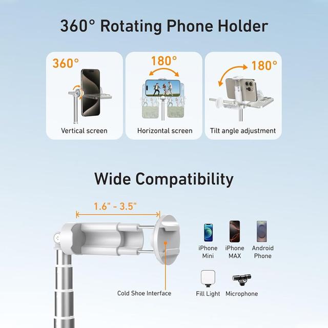 Boost your content creation: Whether it’s vlogs, live streaming, travel photography, TikTok, or YouTube videos, this stand helps you create more professional and engaging content.