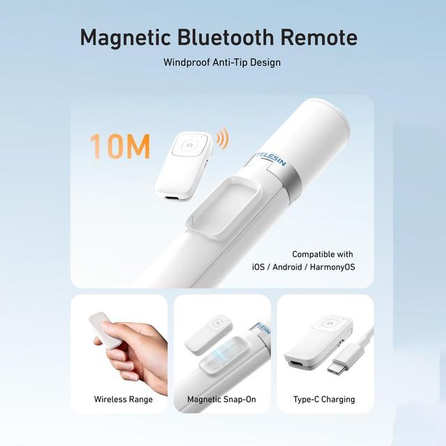 Hands-free comfort: The detachable Bluetooth remote lets you capture shots from a distance without rushing back to press the button. Fully compatible with both iOS and Android devices.