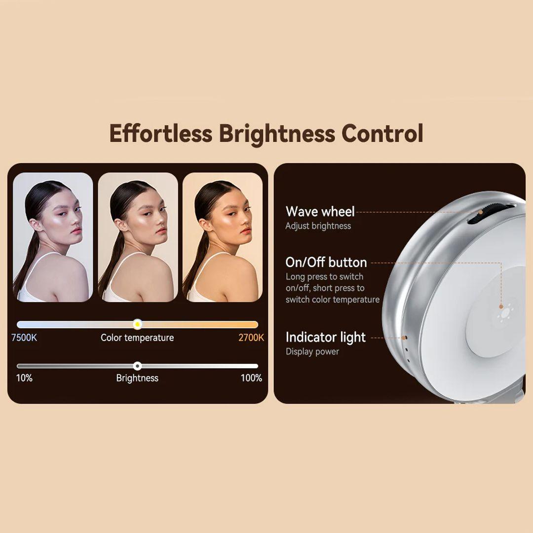 Whether you’re taking selfies, streaming live, or attending a Zoom call, choose from 3 color temperatures (Warm 2700K, Natural 5600K, Cool 7500K) with smooth brightness control from 10% to 100%. The result? Balanced, professional-quality photos and videos anywhere.