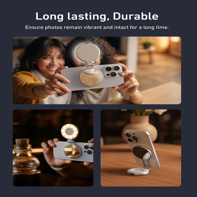 The 56mm HD mirror lets you quickly check and adjust your makeup or appearance before any meeting, live session, or photo shoot. Stay flawless on the go.