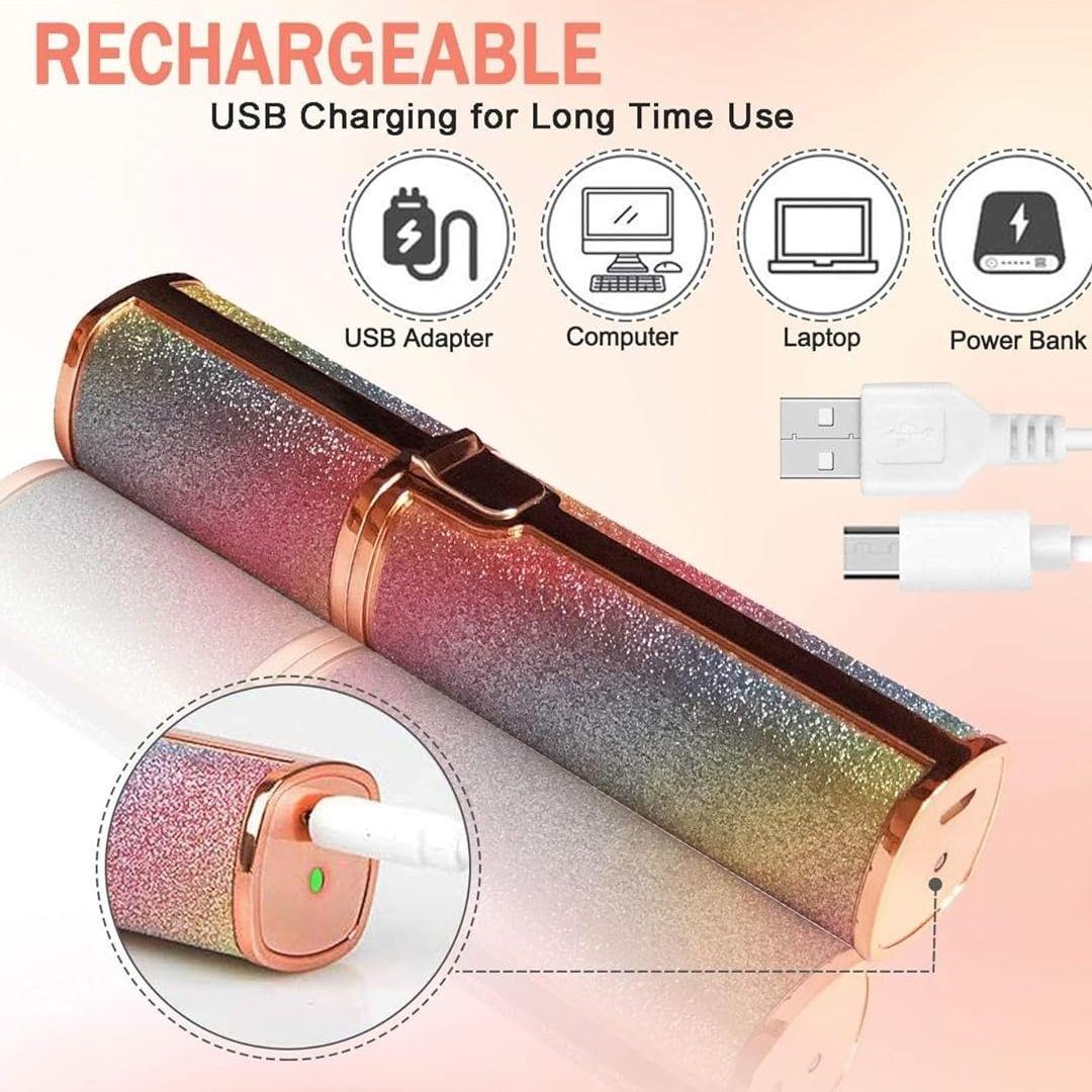 Lightweight, glittery, and chic – designed like a lipstick so you can slip it into your purse or pocket and use it anywhere: travel, work, or nights out.