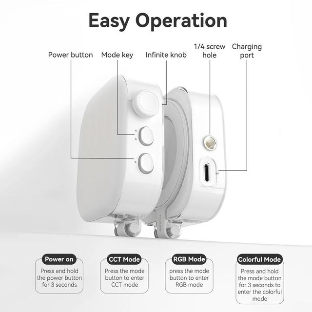 With over 360° RGB options, you can easily switch and play with different moods—whether it’s casual selfies or creative video shoots.