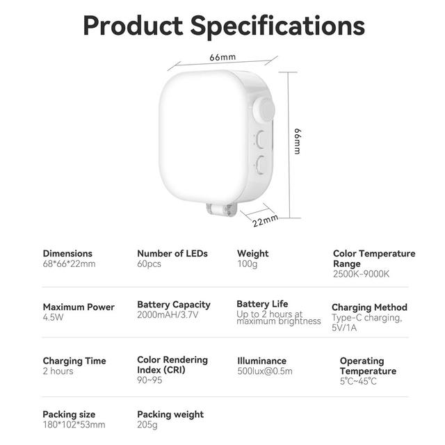 Palm-sized and easy to carry, perfect for travel, vlogging, makeup sessions, or Zoom meetings. Wherever you go, professional lighting goes with you.