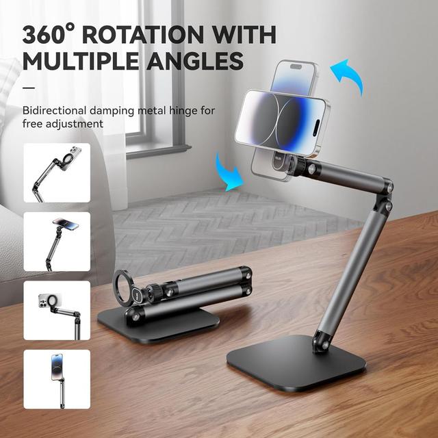 Weighted metal base ensures maximum stability for both phones and iPads.