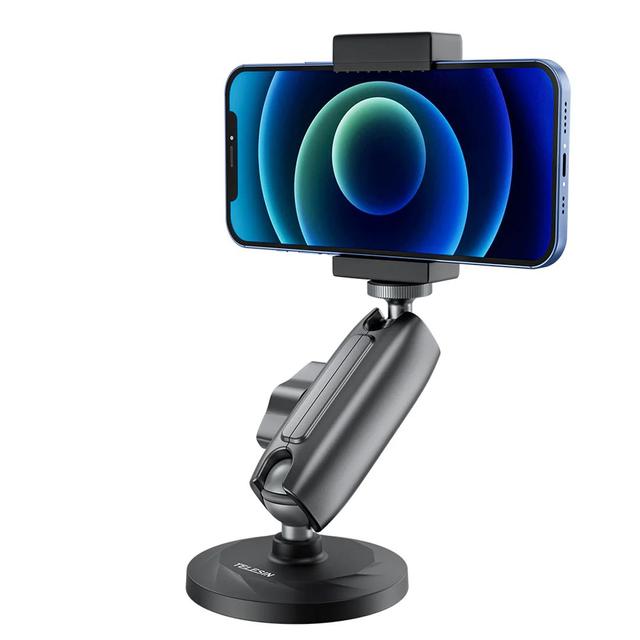The dual-joint double ball head offers full 360° rotation and wide-angle adjustment for height and direction – far more flexible than single ball head mounts.