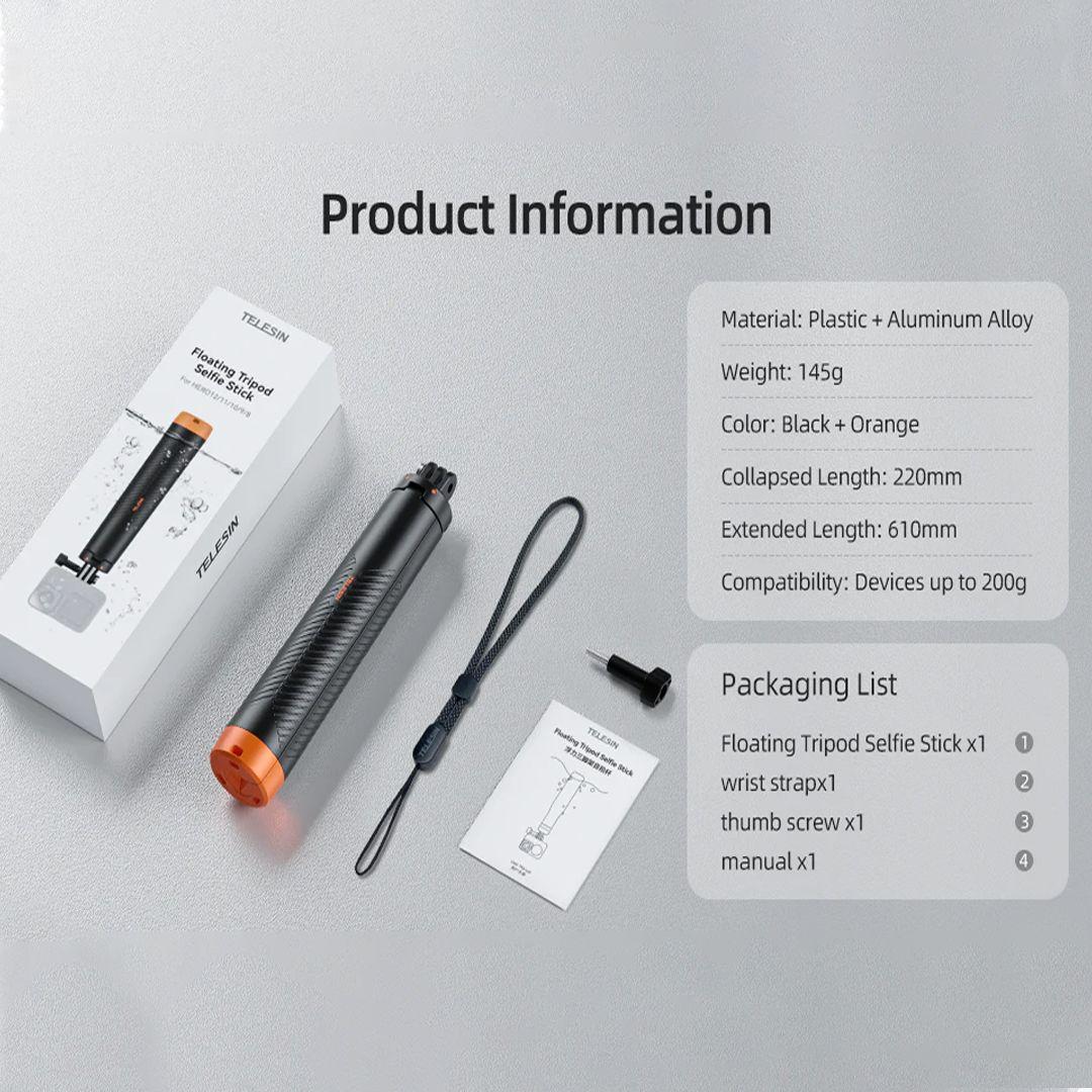 Functions: Buoyancy stick + extendable selfie stick + tripod + grip