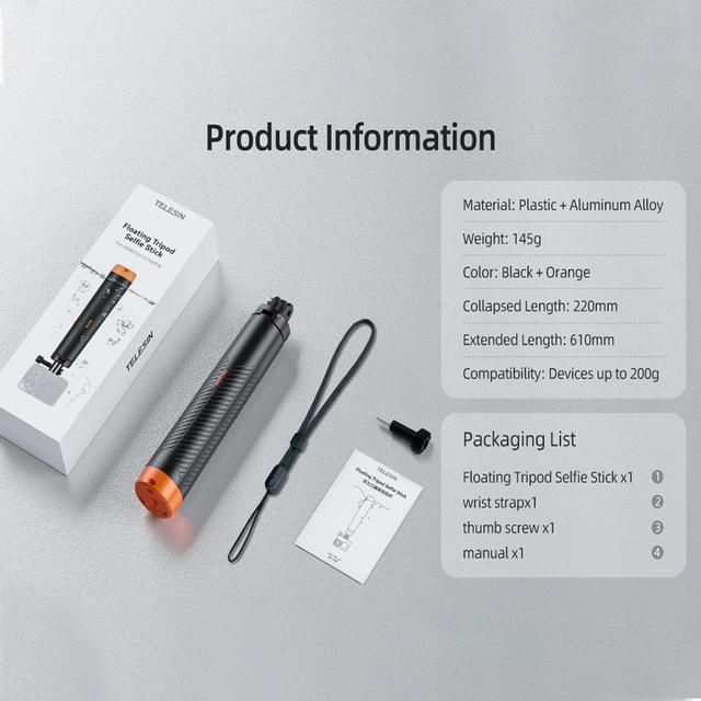 Not just a selfie stick! This multifunctional accessory combines four tools in one: a buoyancy stick to keep your camera afloat, an extendable selfie stick for wide-angle shots, a tripod for stable hands-free filming, and a comfortable handle for daily use. One product replaces four separate accessories.