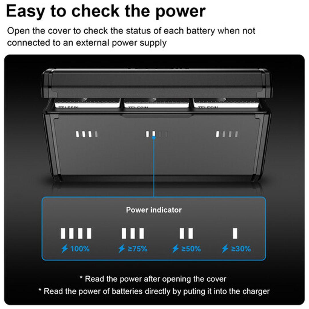 TELESIN S0-ECB-12-TGP Portable Camera Battery Charging Case Fits up to 3 Batteries