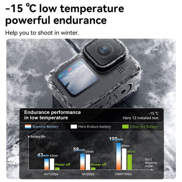 - Built for Extreme Conditions: Performs reliably even in freezing temperatures (-20℃ ~ -60℃), outperforming the original GoPro battery.