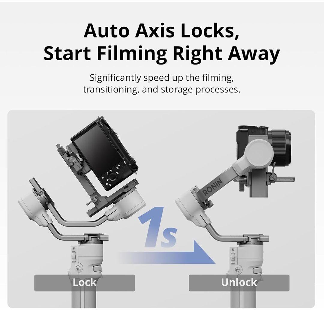 Never miss a moment—thanks to Auto Axis Locks, the gimbal unlocks in just one second so you can start shooting instantly without complications.