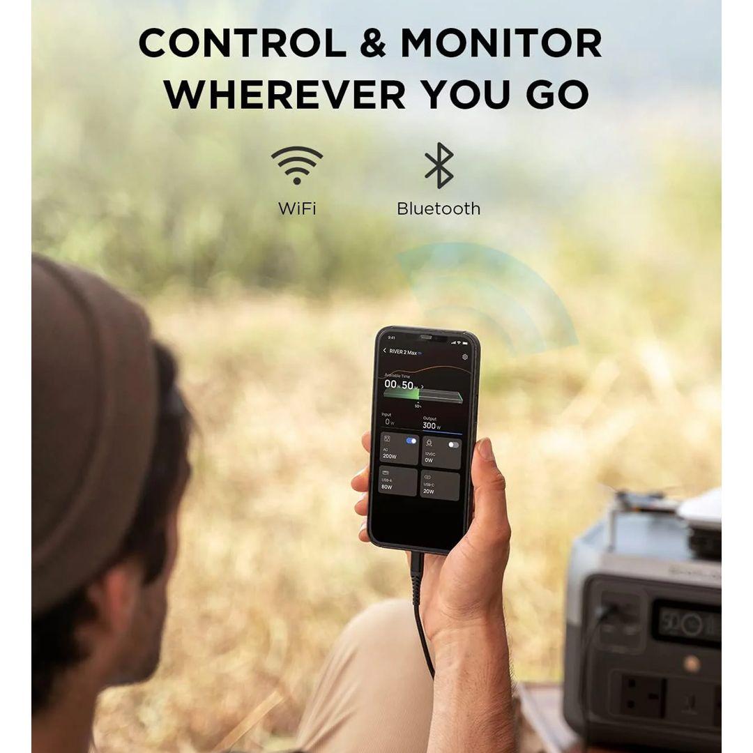 With the EcoFlow app, monitor battery status and manage settings remotely via Bluetooth or Wi-Fi.