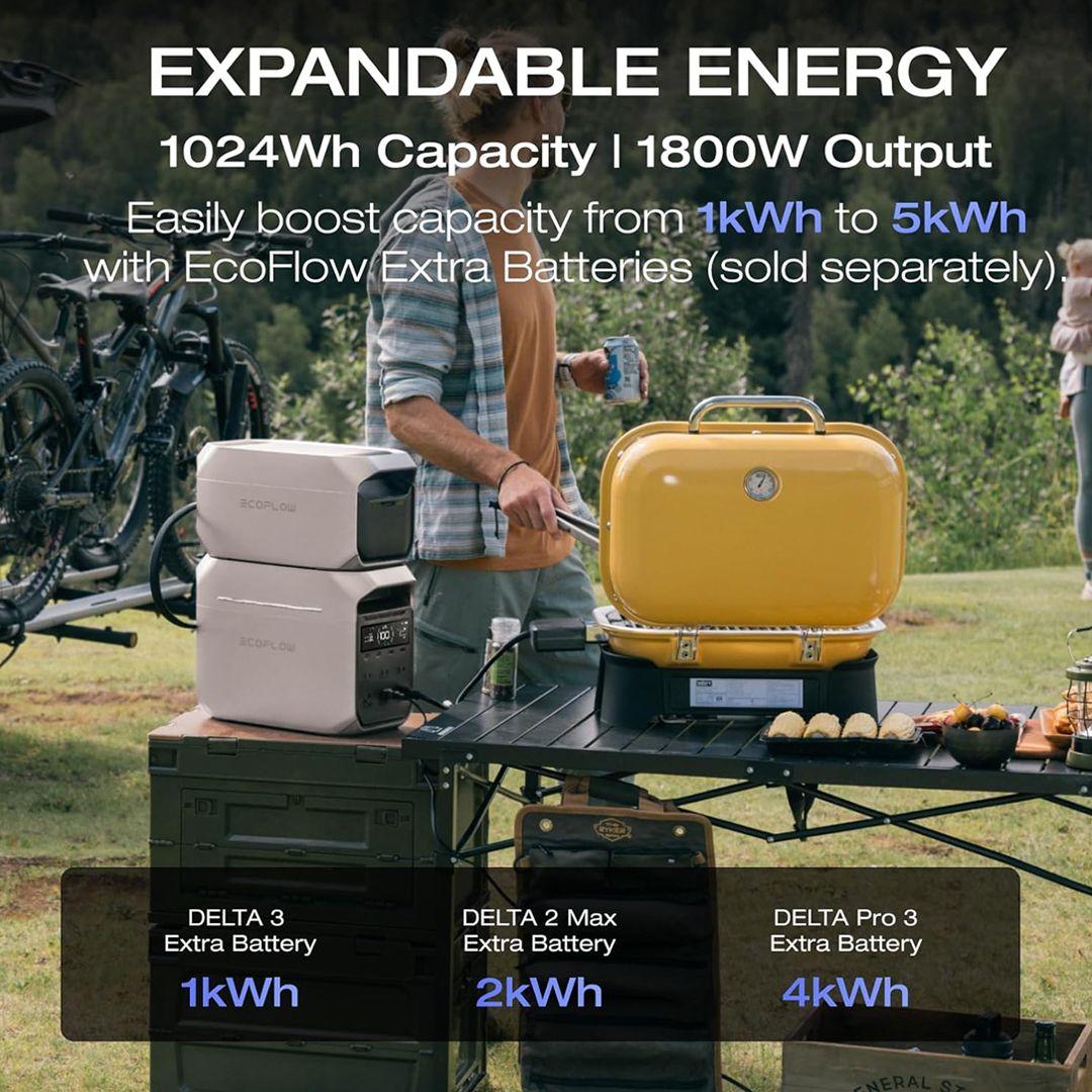Power your home or outdoor adventures – With a 1024Wh base capacity expandable up to 5kWh using extra EcoFlow batteries (DELTA 3 / Pro 3 / 2 Max), it’s ideal for heavy-duty home backup or extended trips.