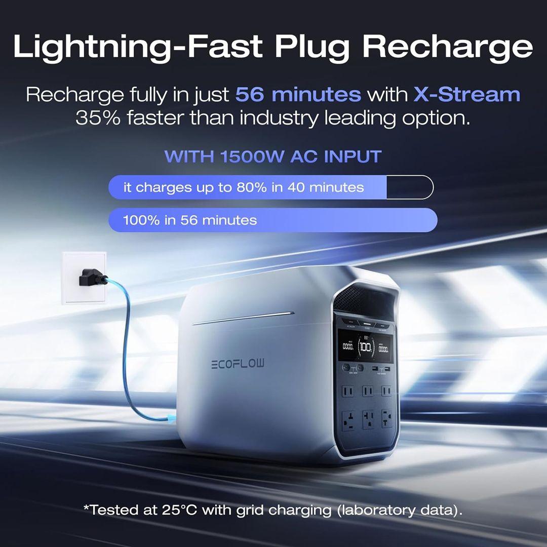 With the EcoFlow DELTA 3 Plus Power Station, you’ll never have to worry again! Smart power, record-fast recharging, and a battery lifespan built to last for years. Perfect for emergencies, camping, or even daily use at home.