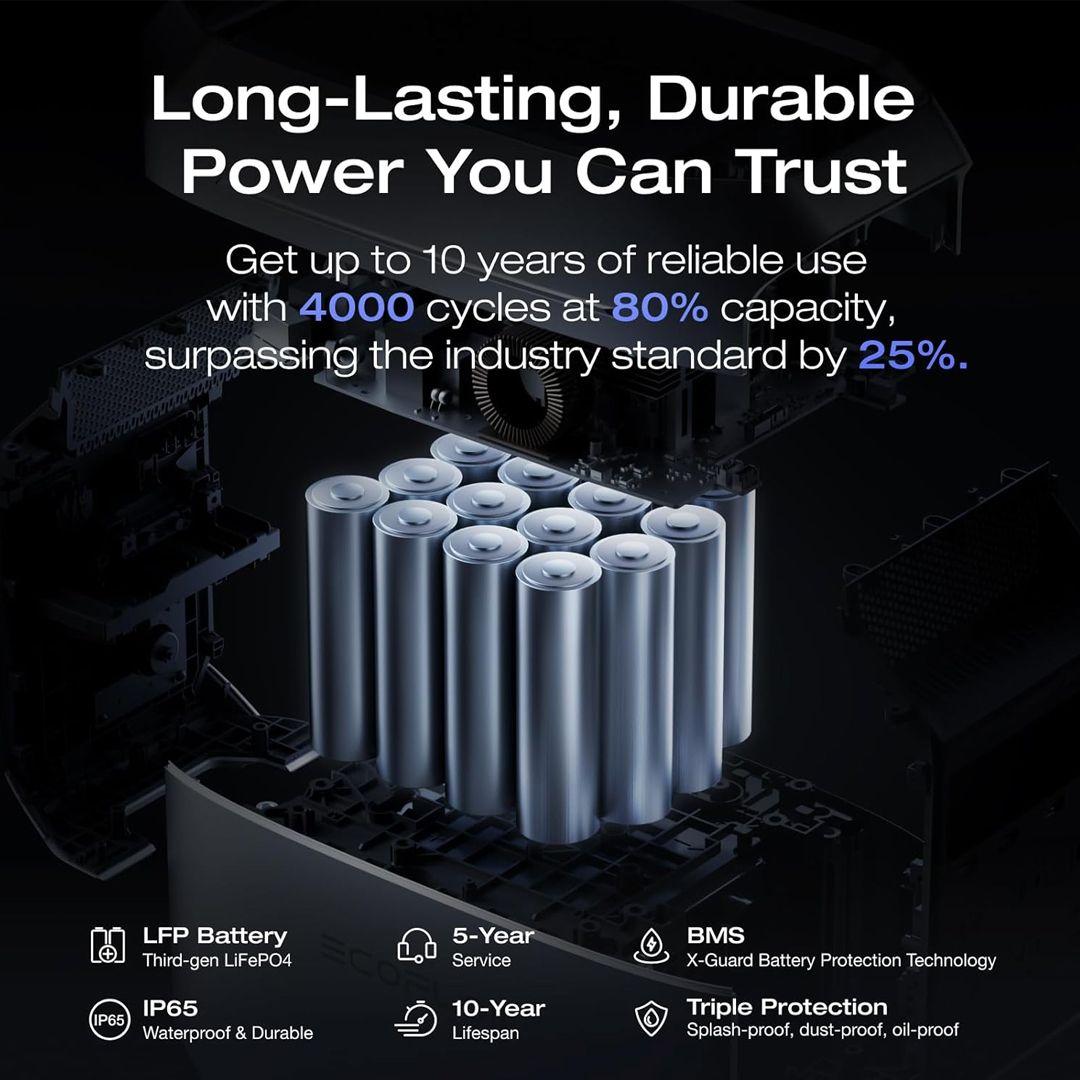Peace of mind for years to come – The advanced LiFePO4 (LFP) battery delivers over 4000 charge cycles without losing efficiency, giving you up to 10 years of reliable daily use.