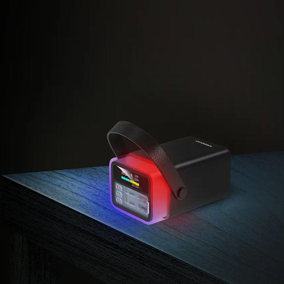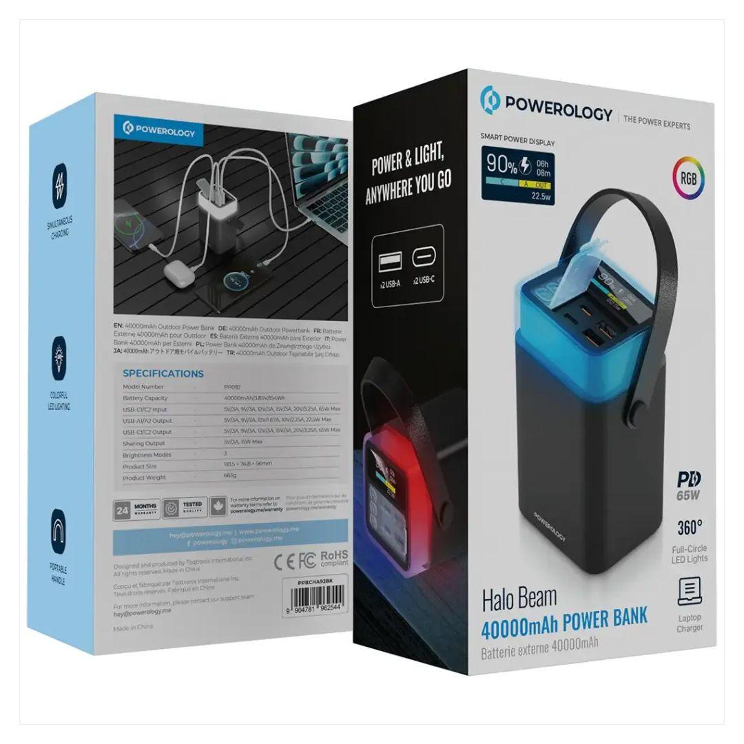 Powerology Halo Beam Power Bank – 40000mAh Capacity with Fast PD 65W Charging,360° LED Lighting