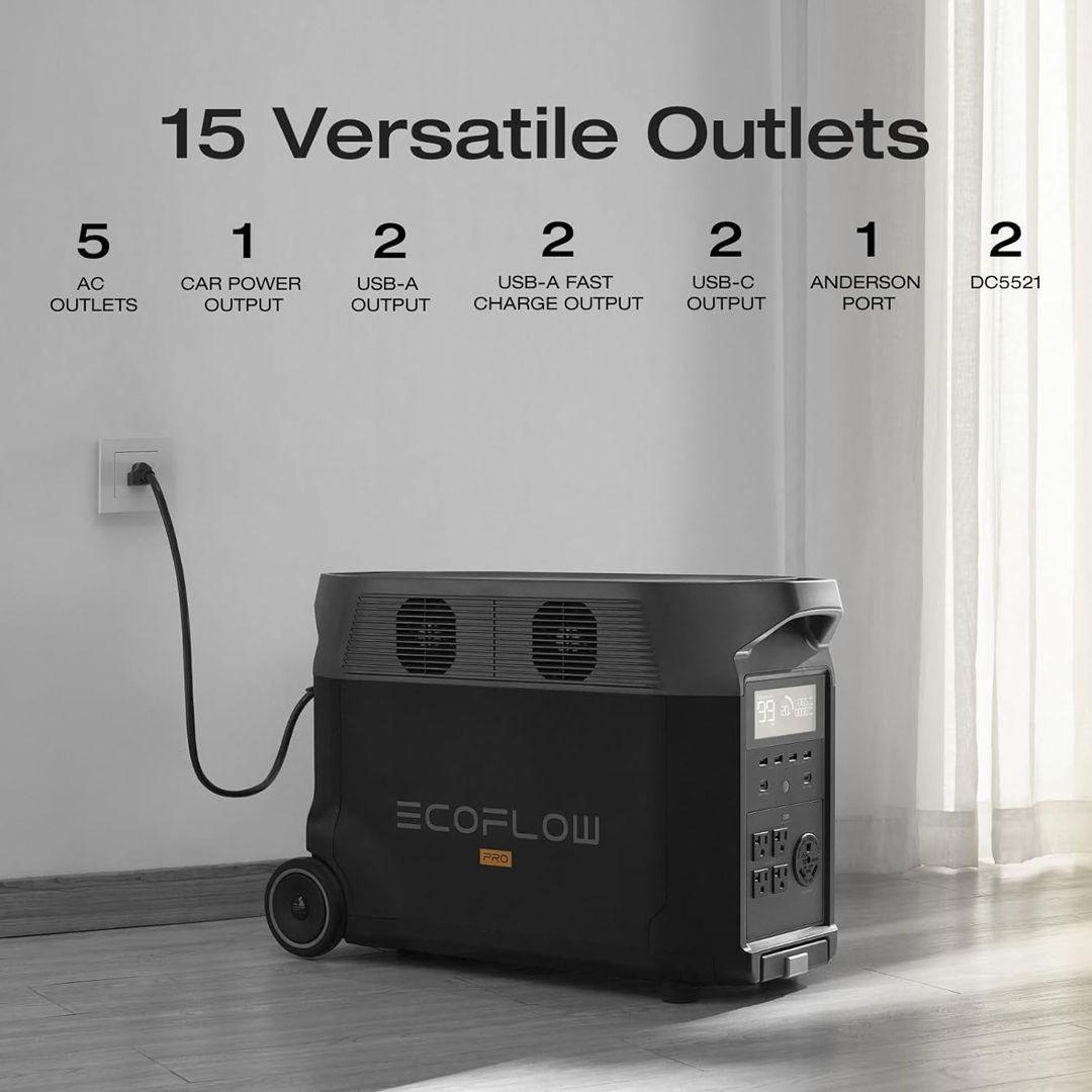 Say goodbye to messy cables and limited outlets. DELTA Pro has 15 output ports including: