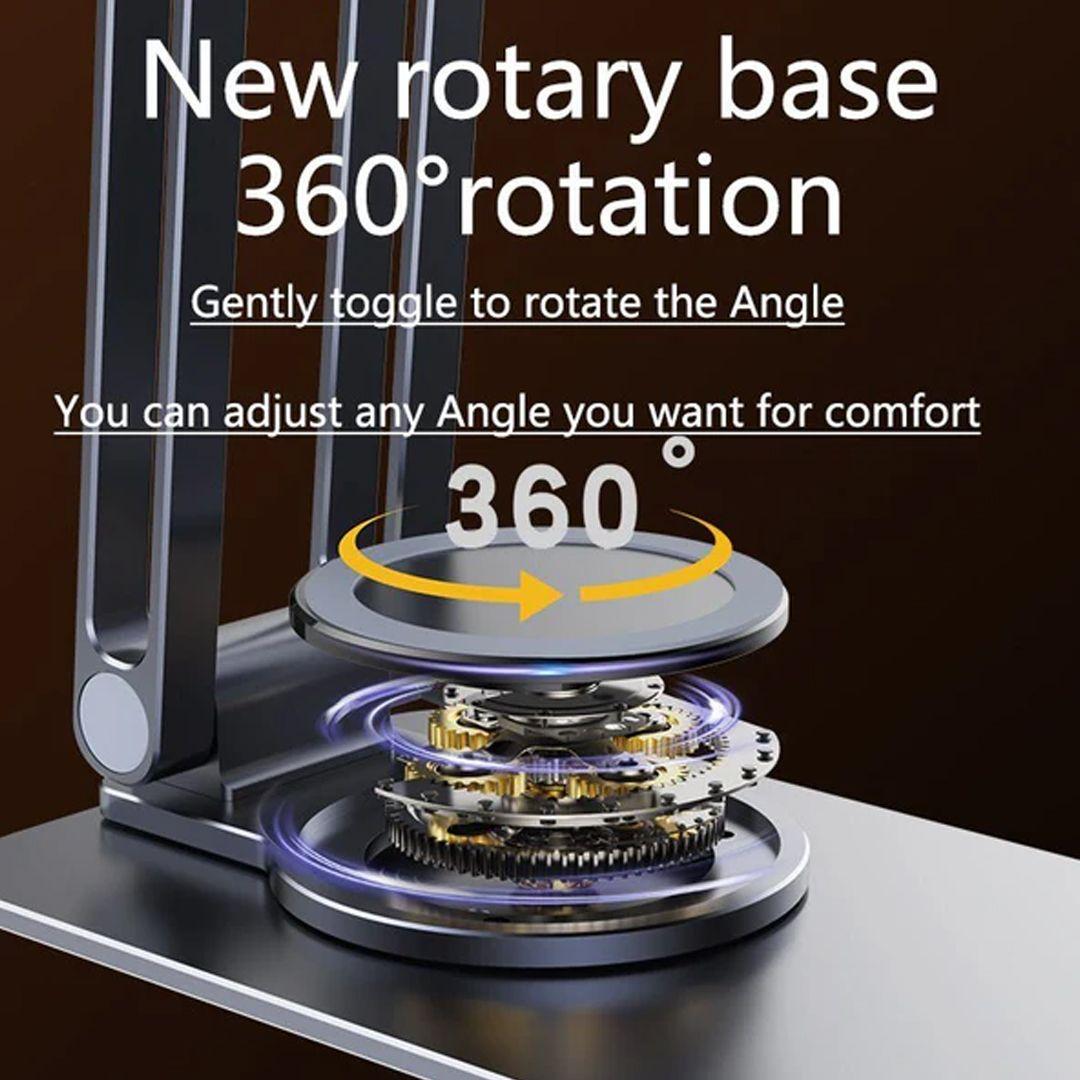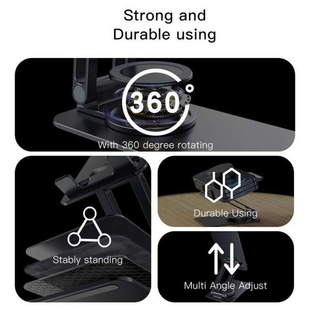 - With its foldable arm and new 360° rotating joints, you can freely adjust your phone or tablet — tilt it, rotate it, or lift it to any angle that suits you!