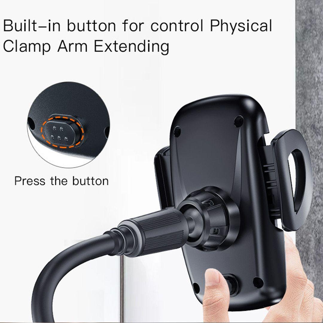 Equipped with a built-in button that opens and closes the clamp with a single press — allowing you to mount or remove your phone effortlessly with one hand.