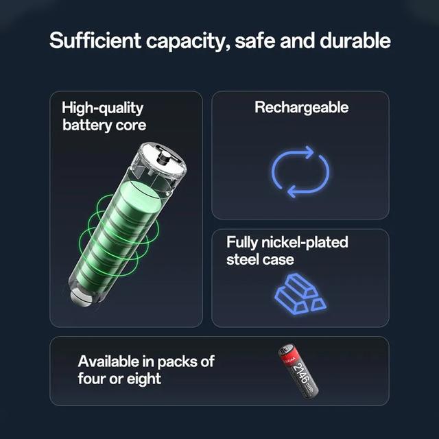 Rechargeable up to 1200 times, reducing the need for frequent replacements and helping minimize electronic waste.