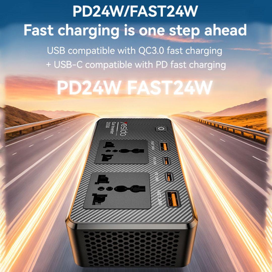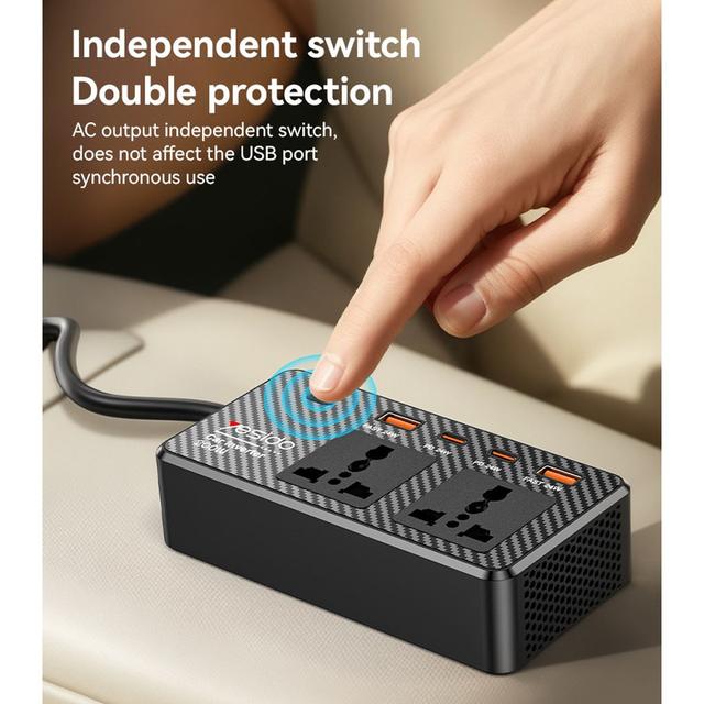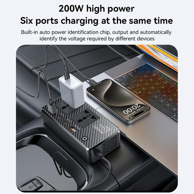 VC07 12V To 200V Incependent Switch Multiple Protections USB QC3.0+TC PD Fast Charging Car Inverter