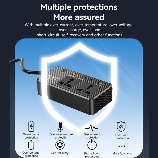 Practical Power Conversion: Converts the car lighter socket (12V) into a 220V outlet, allowing you to easily run chargers, or even light devices like a router or camera.