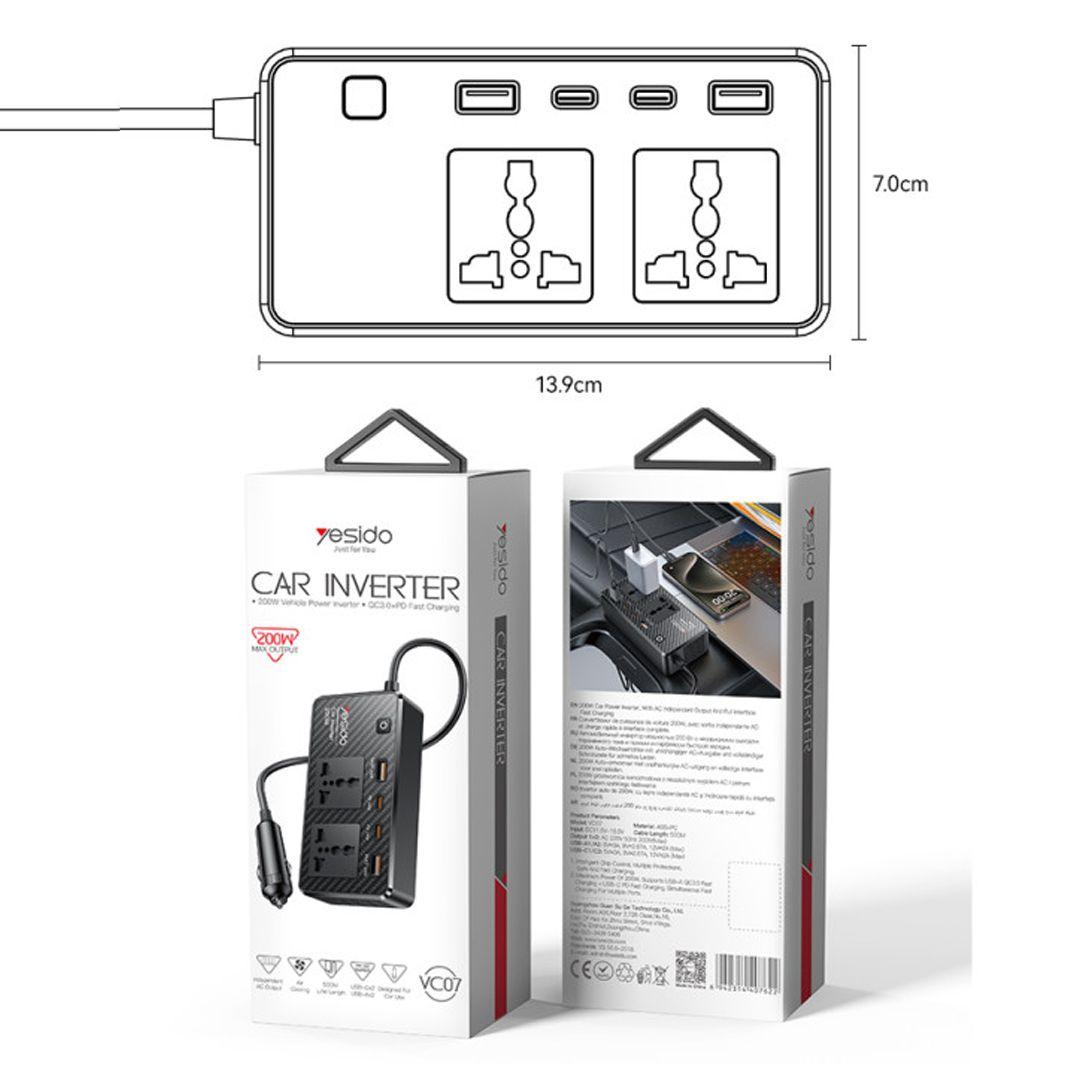 With the Yesido VC07, the solution has become simple and smart, as it converts the car’s socket into a full power source with a 200W capacity, charging quickly, and protecting your devices safely.
