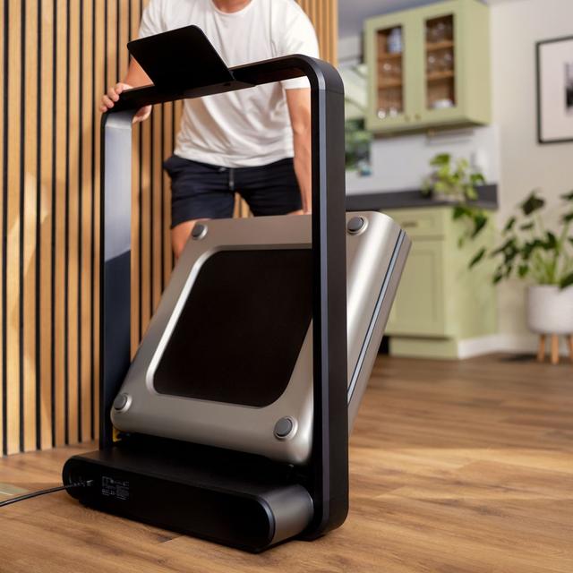 - Imagine a treadmill that folds twice! The double-folding technology makes it smaller than a suitcase — perfect for apartments or tight spaces — and you can move it around effortlessly.
