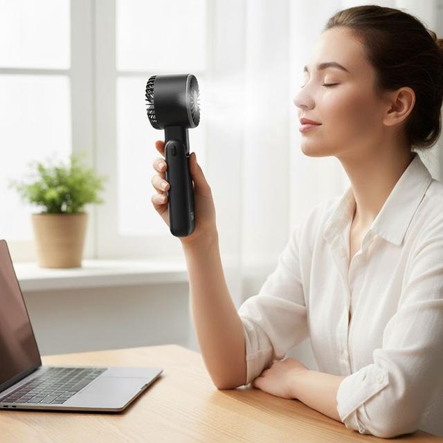 The SIA Handheld Cooling Fan gives you strong and refreshing airflow that instantly reduces heat—whether you're outdoors, in the car, at the office, or at home.