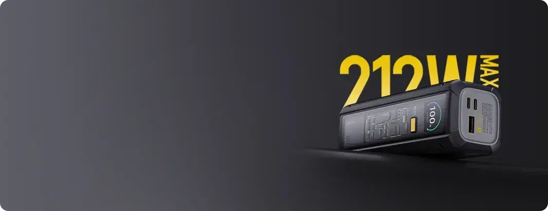 Charge faster than ever → Up to 140W single-port output or 212W total for three devices.
