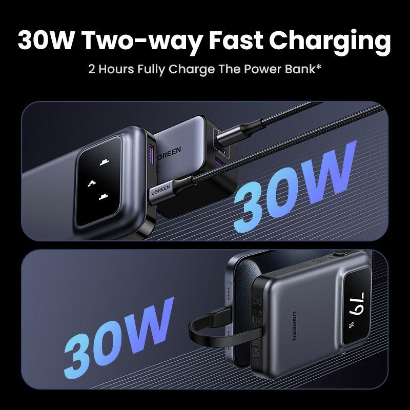 Integrated Design: Ugreen portable charger has a built-in 1.6ft USB C charging cable, making charging more convenient, also has both USB-A and USB-C interface, which can power 3 devices simultaneously, maximizing productivity Adorable
