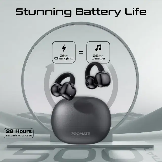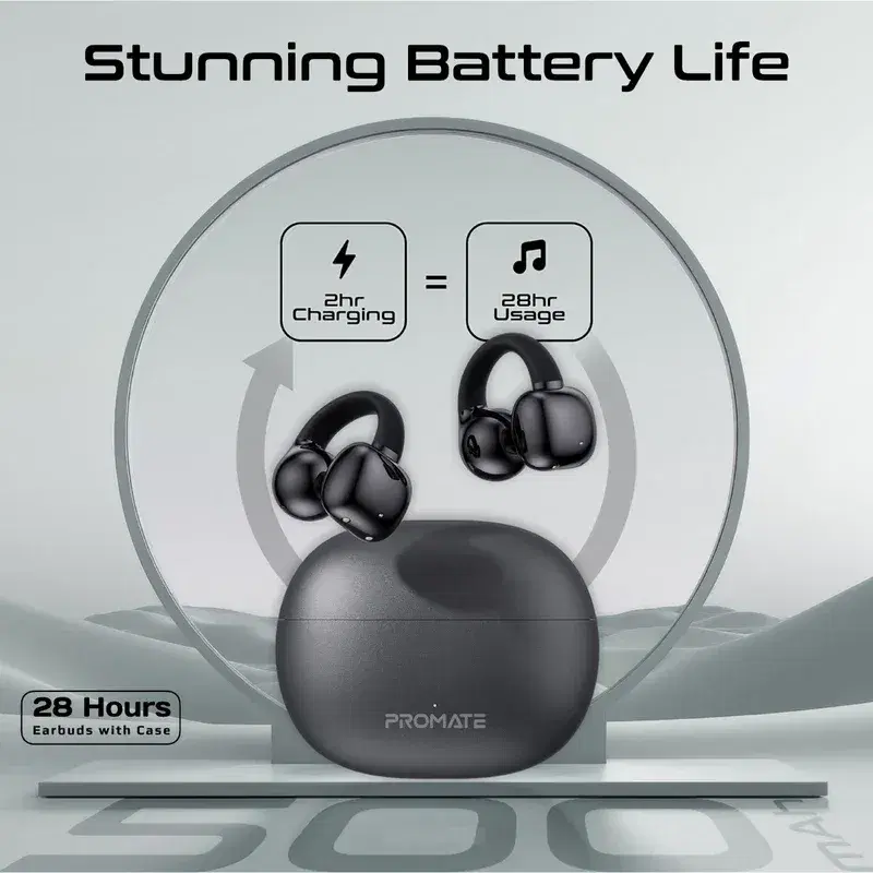 Experience audio like never before with AirClip, the revolutionary clip-on OWS (Open Wearable Stereo) True Wireless Earbuds that combine amazing audio, superior comfort and enhanced environmental awareness. The lightweight, open-ear design with AudioFit™ technology maximizes comfort and reduces ear duress, without compromising on audio quality, while IntelliTouch Control provides effortless music and call handling. Make Crystal Clear Calls and enjoy Superior Sound Quality with True Wireless Stereo and up to 28 hours of music playtime. Its IPX4 water-resistance and extended battery life mean you can take your music anywhere, no matter the conditions. Discover the freedom of OWS True Wireless Earbuds with AirClip.