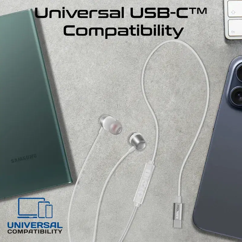 Immerse yourself in a world of crystal-clear audio with the Silken-ENC by Promate. Designed for audiophiles and professionals alike, these high-fidelity in-ear wired earphones deliver immersive stereo sound that elevates every listening experience. With a built-in mic and Advanced Environmental Noise Cancellation (ENC), Silken-ENC provides exceptional call clarity , no matter the surroundings. The sleek inline controls provide effortless command over music and calls, while the universal USB-C™ input guarantees seamless compatibility with modern devices. Built to last, the durable metal casing and flexible 1.2m TPE cable combine style and resilience. Silken-ENC blends cutting-edge technology with timeless design for a listening experience that’s pure perfection.