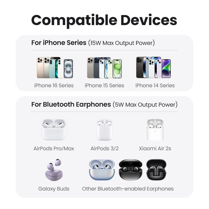 【WIDE COMPATIBILITY】: The charging station compatible with multiple devices is compatible with iPhone 16/16 Pro/15 Pro Max/14/13/12 series, AirPods Pro 2/1, AirPods3/2, Galaxy Buds, and most Qi-enabled devices. If your phone is not built in MagSafe it can be connected seamlessly and charged with MagSafe compatible case