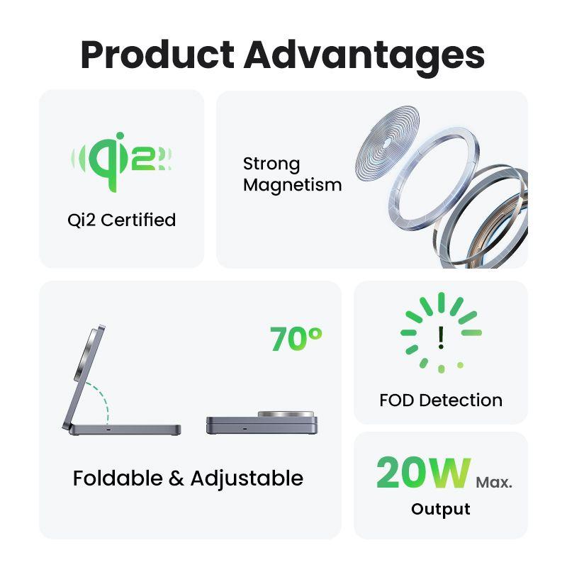 UGREEN 2-in-1 Magnetic Wireless Charger 20w -Gray