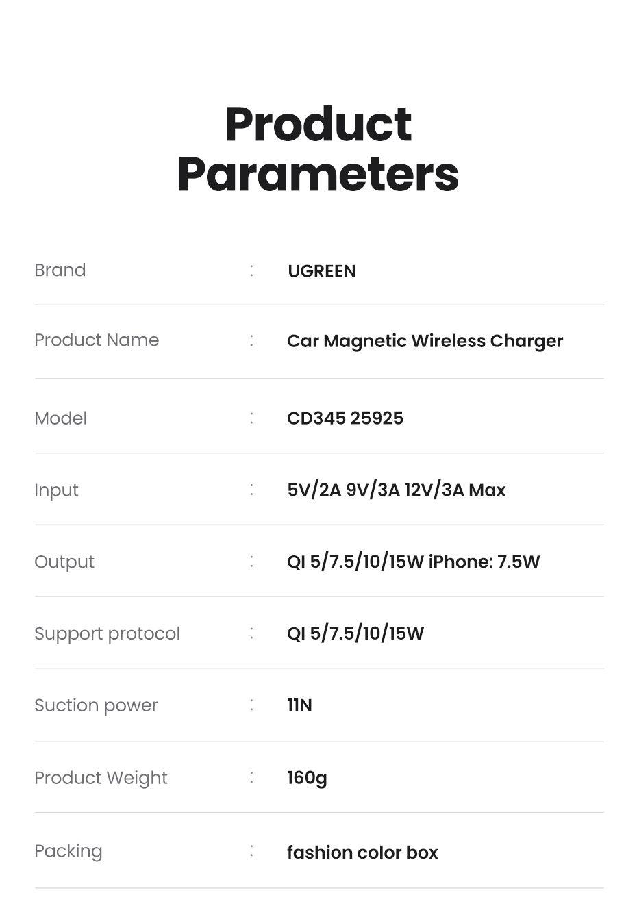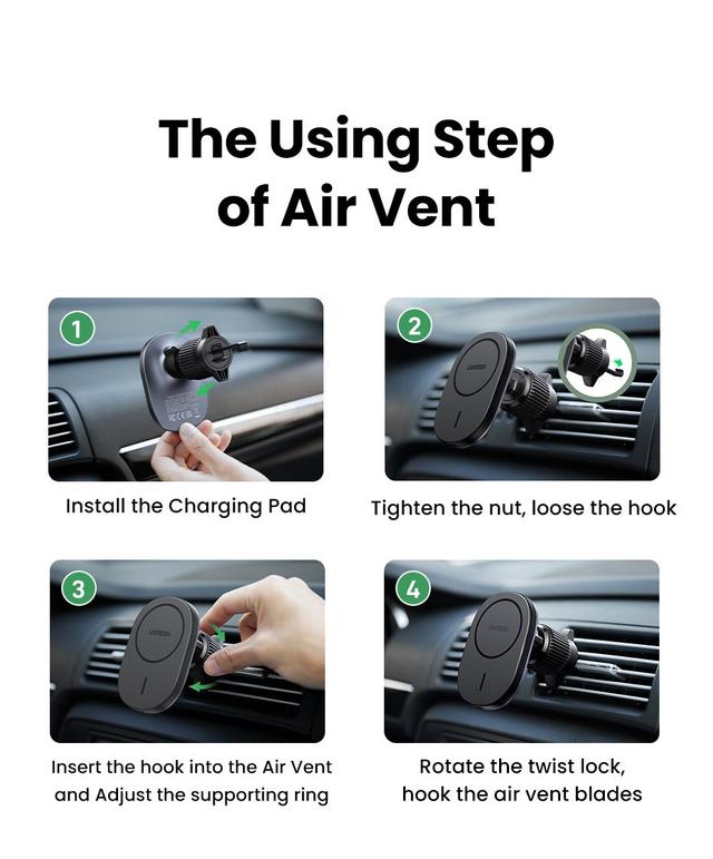 UGREEN Magnetic Car Wireless Charger 15W 2-in-1 MagSafe CD345 for car for cockpit/windshield/vent grille